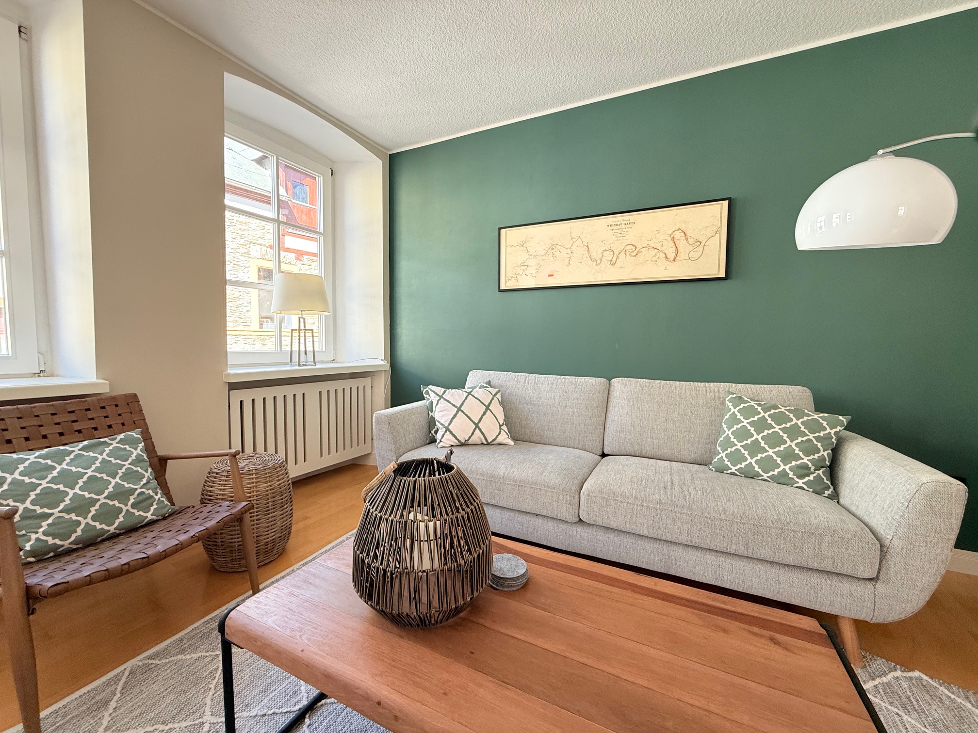 Unsere „Alte Dame“ wurde im Winter 2020 komplett renoviert und stilvoll und dezent neu möbliert. Im Frühjahr 2025 wurde nun auch das große Badezimmer komplett renoviert.
