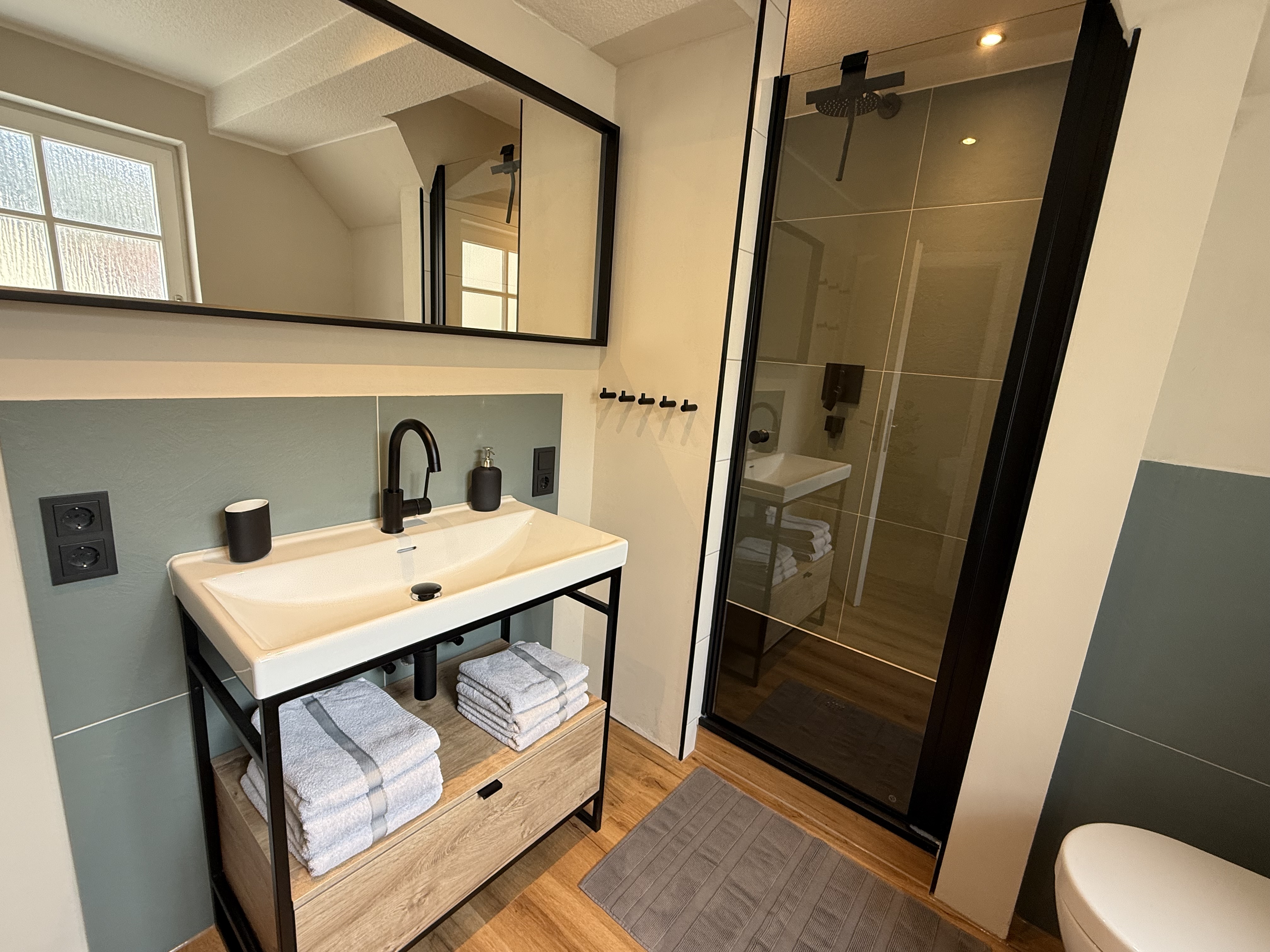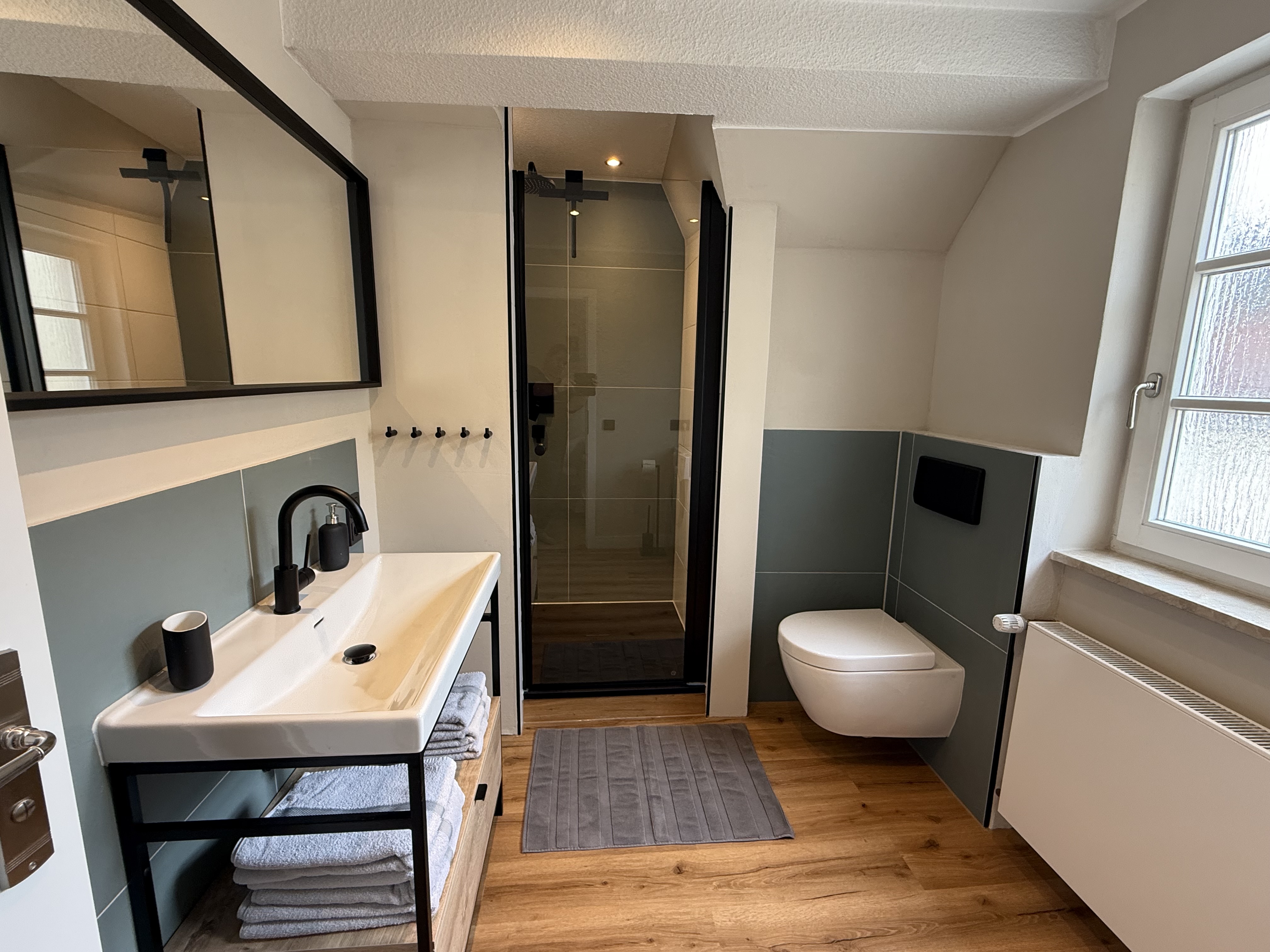 - Badezimmer mit Dusche und Waschmaschine (in 2025 komplett renoviert)