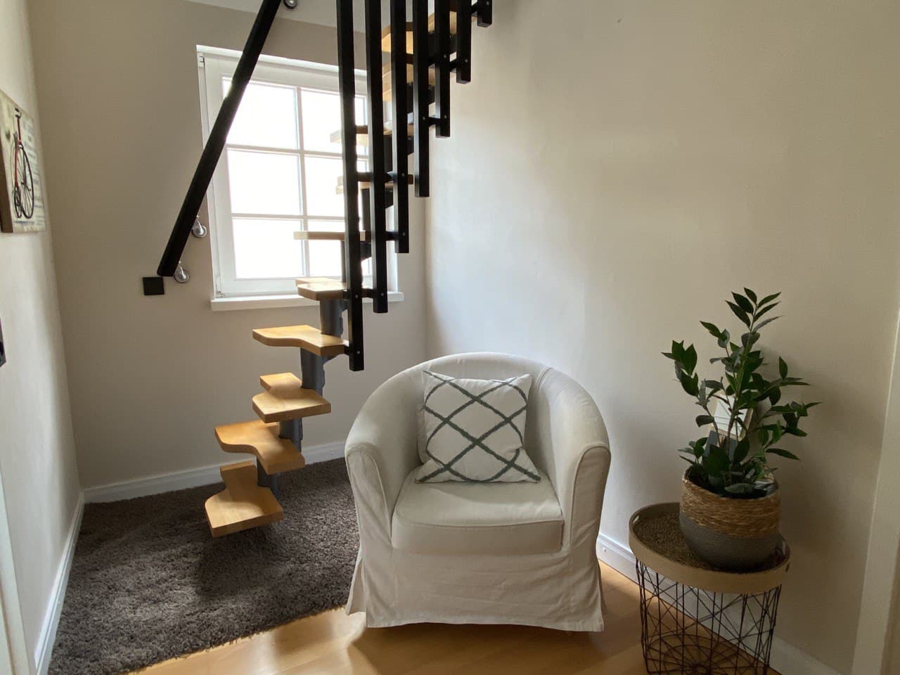 Sie bietet auf etwa 100m² Platz für 5 Personen. Dabei sind die Räume verteilt auf drei Geschosse.