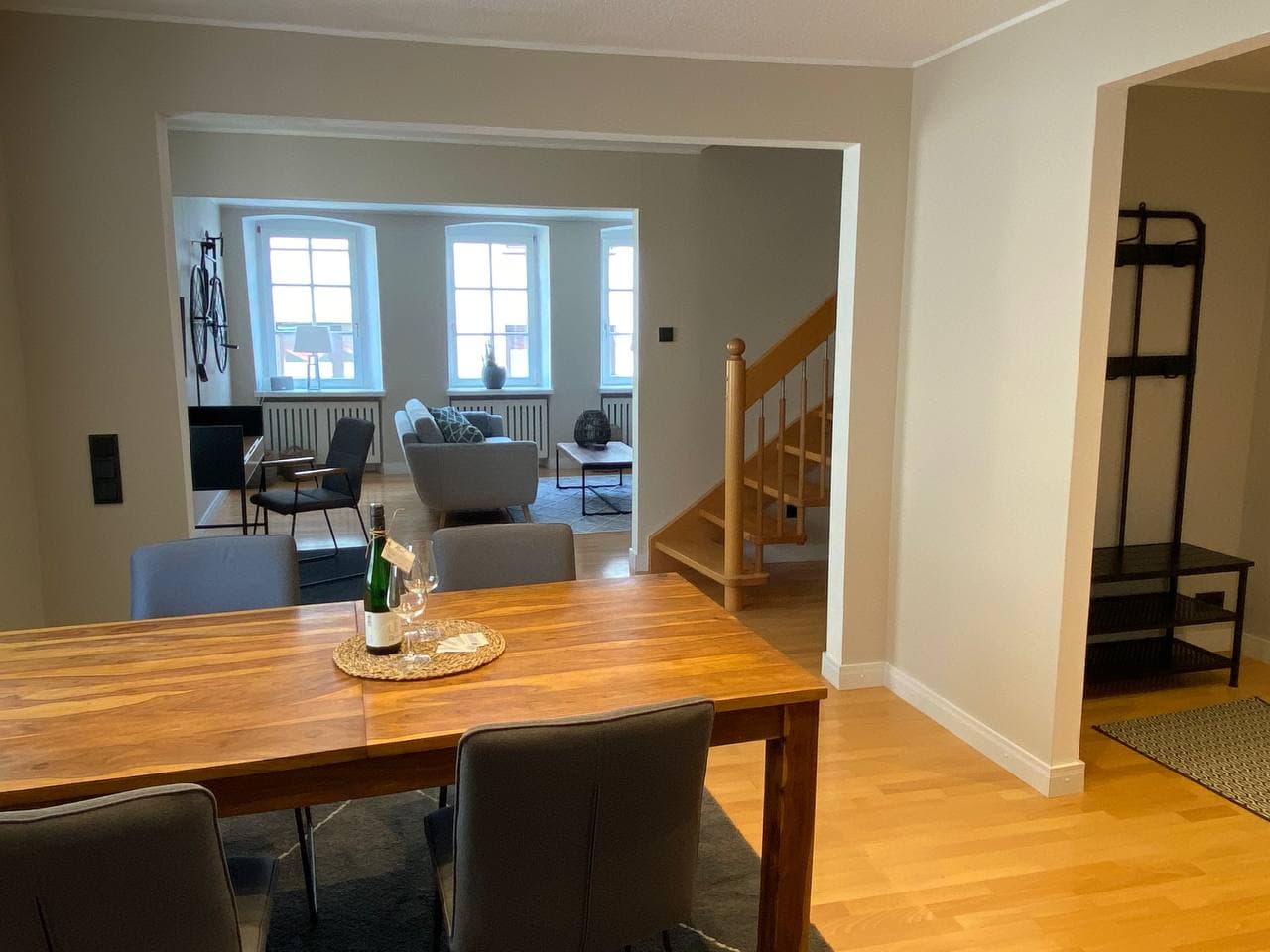 Im 1. Obergeschoss befinden sich Küche, Wohnräume und das Gäste-WC.