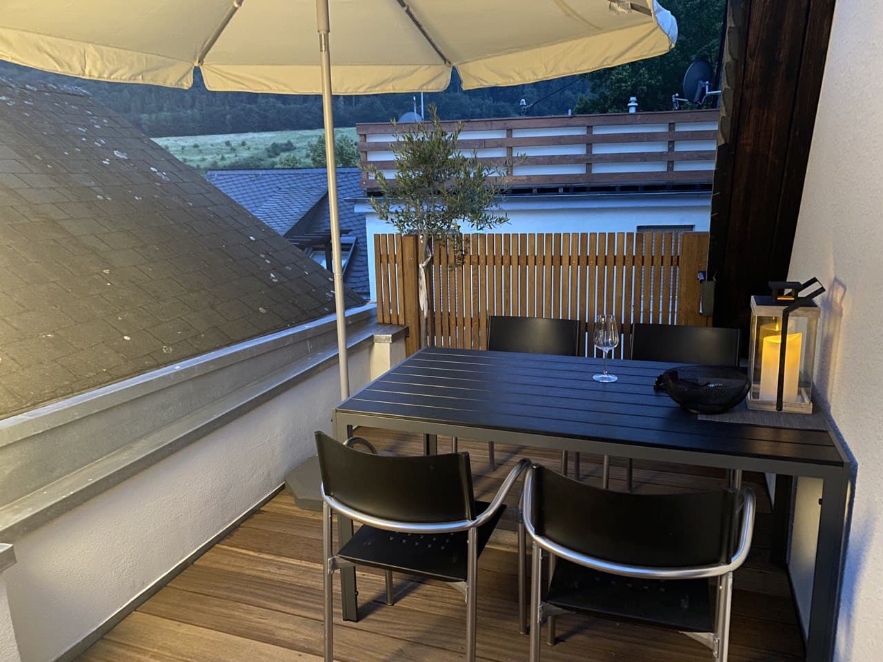 - überdachter Balkon mit Blick weit über Zeltingen, Weinberge und Moseltal